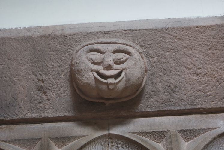 The carving of a head over the window to the east of the north door required a craftsman of greater skill. It is suggested that it represents Gluttony. There is one also over the window to the west of the door.