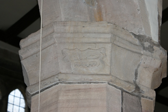 On the capitals of several of the pillars at the back of the church are crude carvings, some of terrifying aspect. It was said that such grotesque carvings, often seen about old churches, had the power of driving away evil spirits.