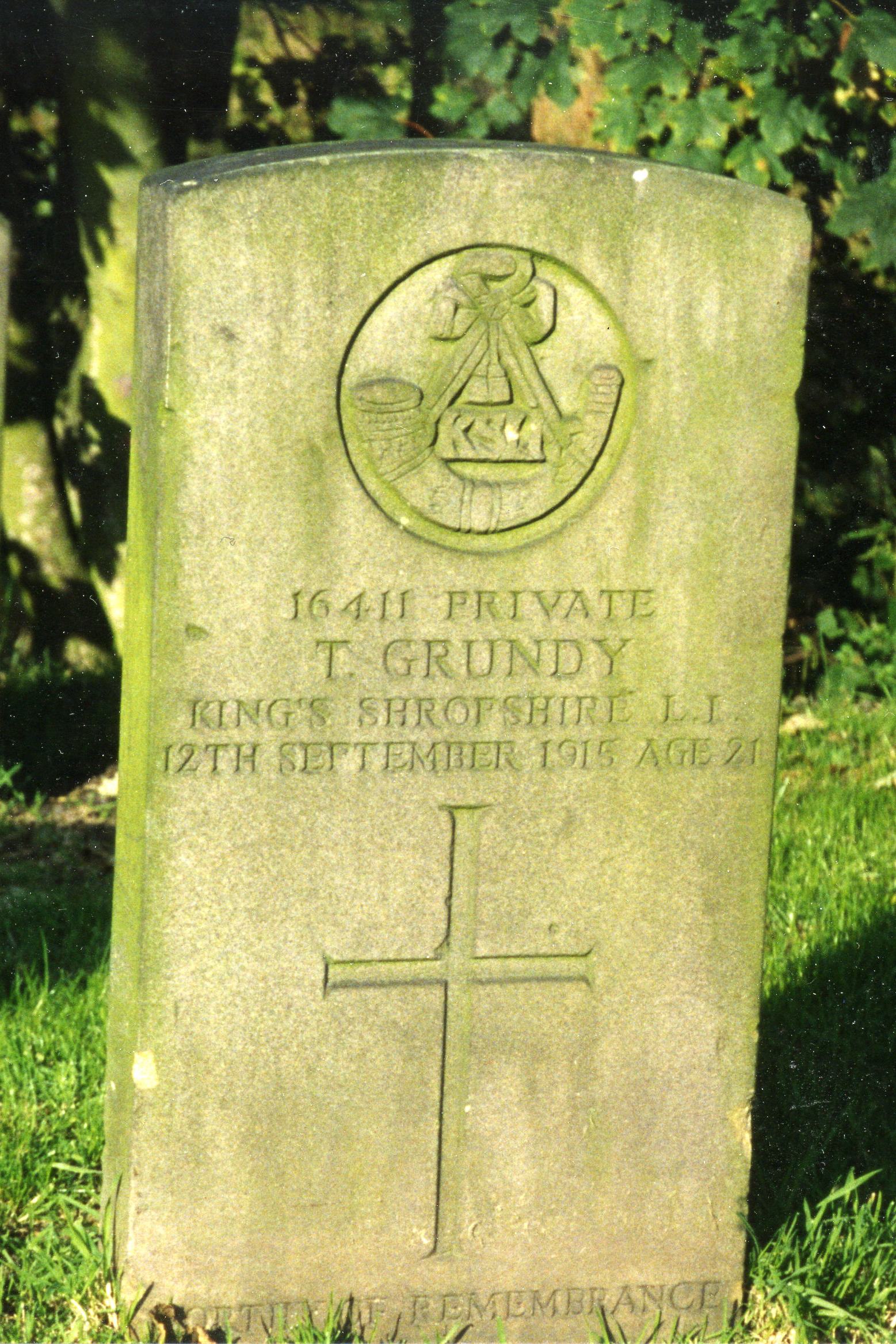 Notes: | Son of James Grundy, of 47, Hollins St., Middle Hulton, Bolton |
